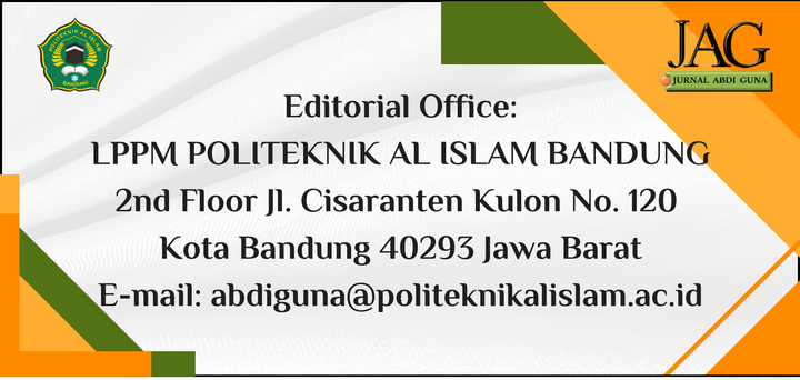 JURNAL ABDI GUNA (ISSN Online: .... ISSN Print: .... ) is a scientific journal published by the Institute for Research and Community Service (LPPM) of Politeknik Al Islam. It is issued biannually, in March and September. This journal serves as an academic publication platform focusing on community service initiatives, with a scope encompassing the fields of Health Sciences, Applied Sciences, Social Sciences and Humanities, and Education.
